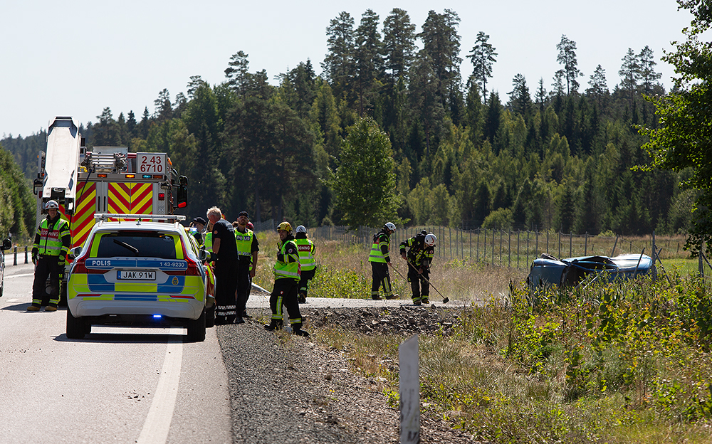 Vid middagstid på måndagen larmades Räddningstjänsten i Aneby, ambulans och polis till en allvarlig singelolycka på riksväg 32, strax söder om trafikplats Bredestad.